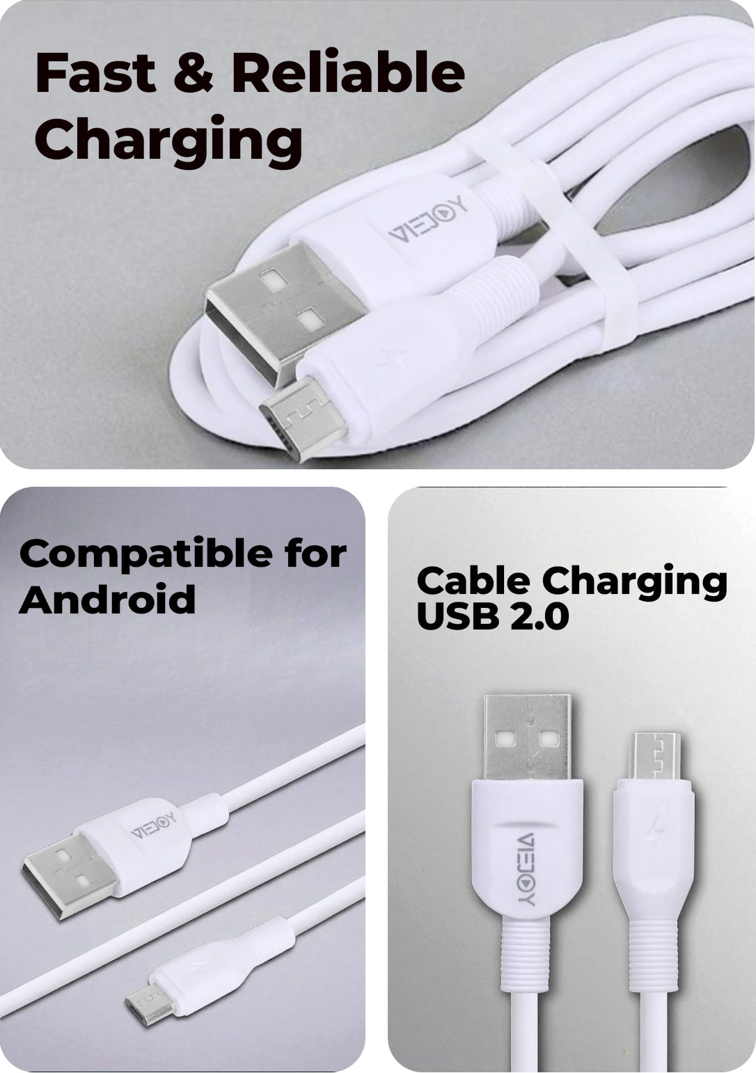 Input Type USB A , compatible for android and ios, Material PVC, Length 1 Meter, Fast Charging, Data Transfer Speed upto 480MBPS,Power Rating 5V/3.0 Amp,Cable Charging Tech USB 2.0, Connector Material Nickle Plated