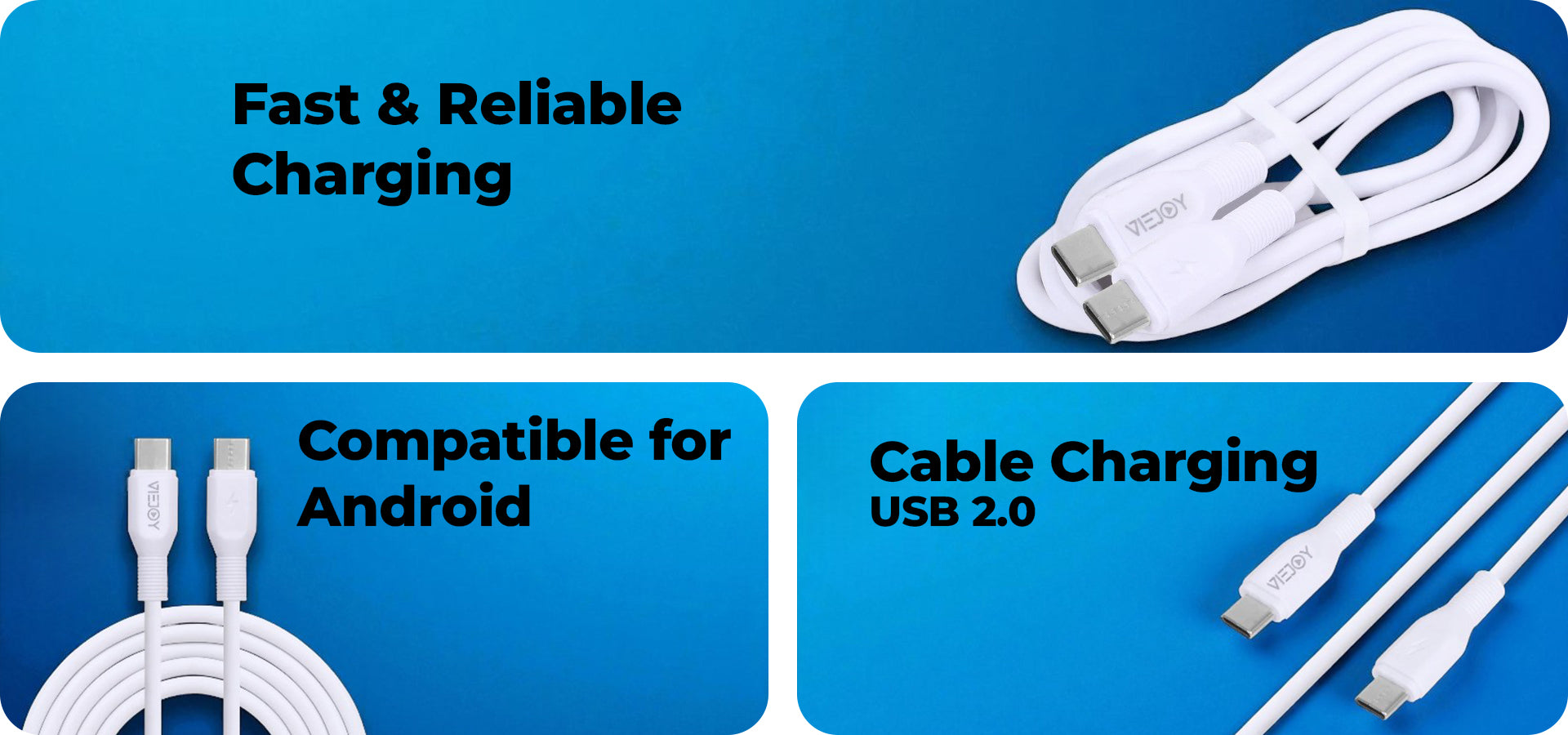 Input Type USB C Compatible for Android & iOS Material PVC Length 1Meter Fast Charging Data Transfer Speed upto 480Mbps Power Rating 5V/3.0Amp Cable Charging Tech USB 2.0 Connector Material Nickle Plated