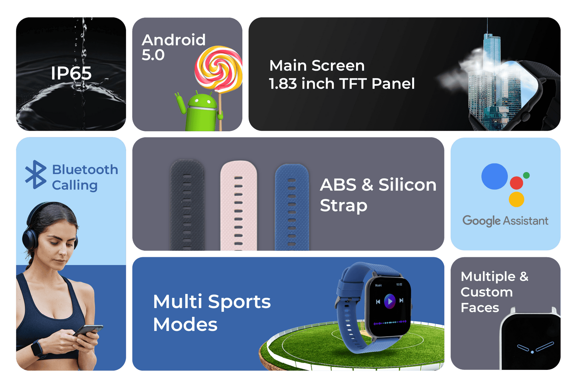 VIEJOY Smart Watch (Silver) 1.83 Display, Bluetooth Calling, IP65 Water Proof, Multiple Watch Faces, Multi Sports, Smart Reminder, AI Voice Assistance Smartwatch