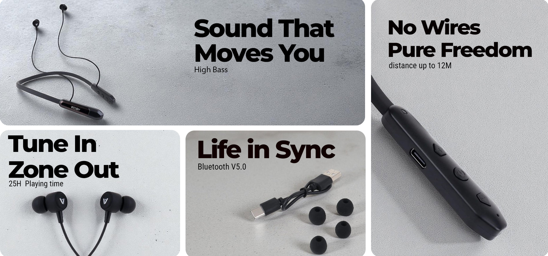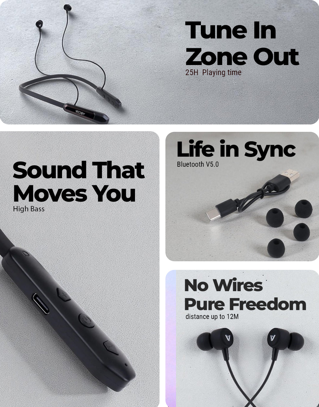 Viejoy Ear Bluetooth Neckband with Mic Bluetooth Talking Time 40 Hours Music Time 55 Hours Standard 2000 Hours Playtime ASAP Charge10mm Drivers Dual Pairing